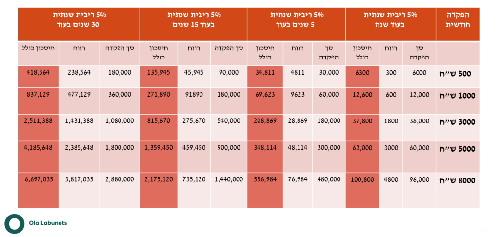 להבנת החישוב יש צורך בידע מקדים של המושגים "ריבית דריבית", תשואה וקרן. מוזמנים להתעדכן בפוסט קודם: כאן